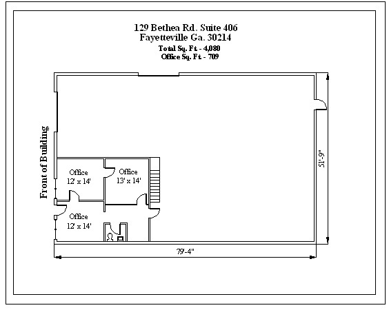 129 Bethea Road Suite 406 in Fayetteville, Ga features 4,080 Sq. Ft of Industrial space with 3 offices, break area, restroom. loft storage above the office,  and warehouse with  1-12′ x 14′ drive-in door and 1 dock high door. The Lease Rate is $3700 per month and includes the water, sewer, property taxes and building insurance. The tenant is responsible for their electric, gas, and garbage. Please call our leasing office to schedule a showing – 770-461-3817